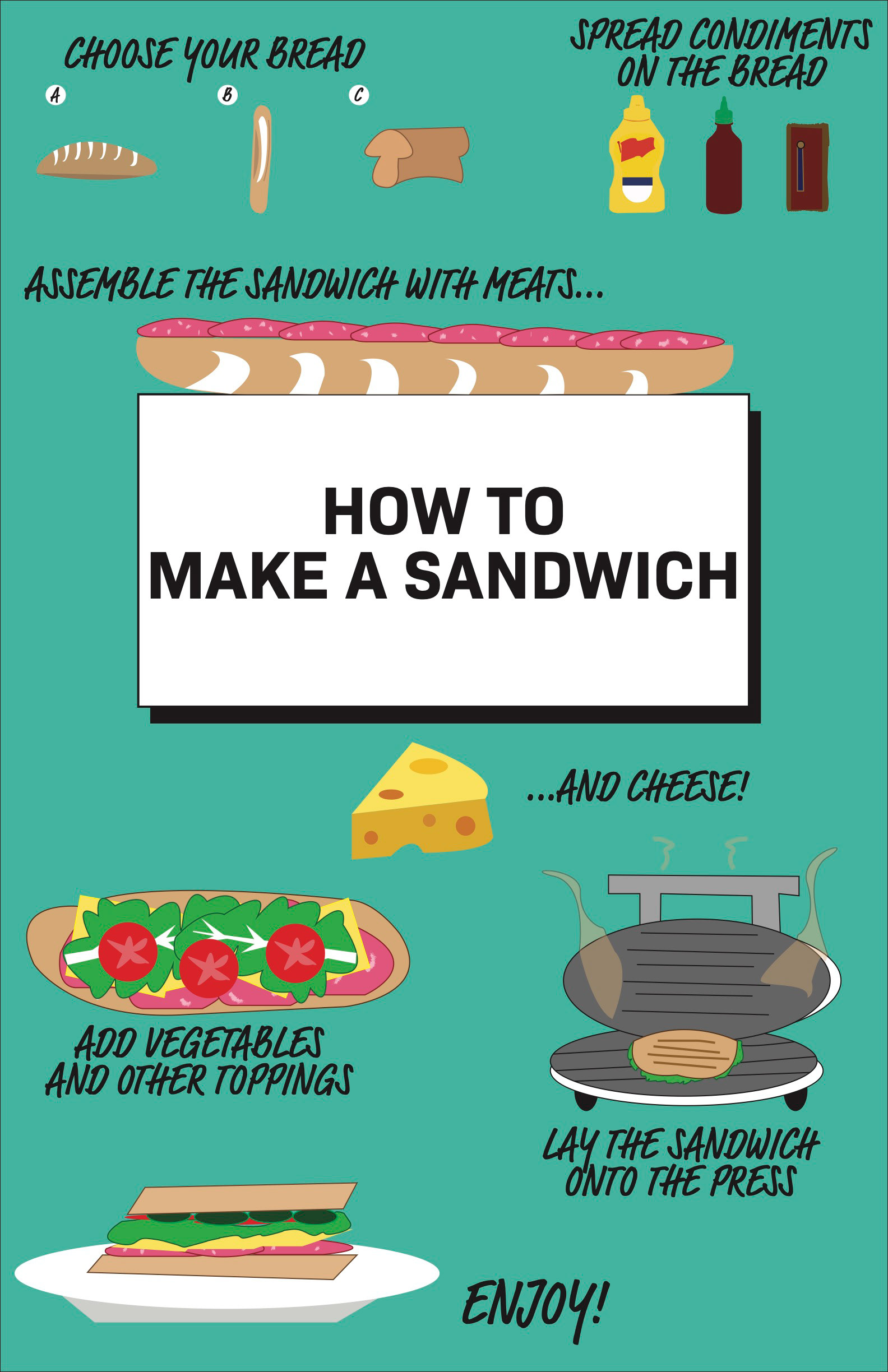 Instructional illustration for making a sandwich
