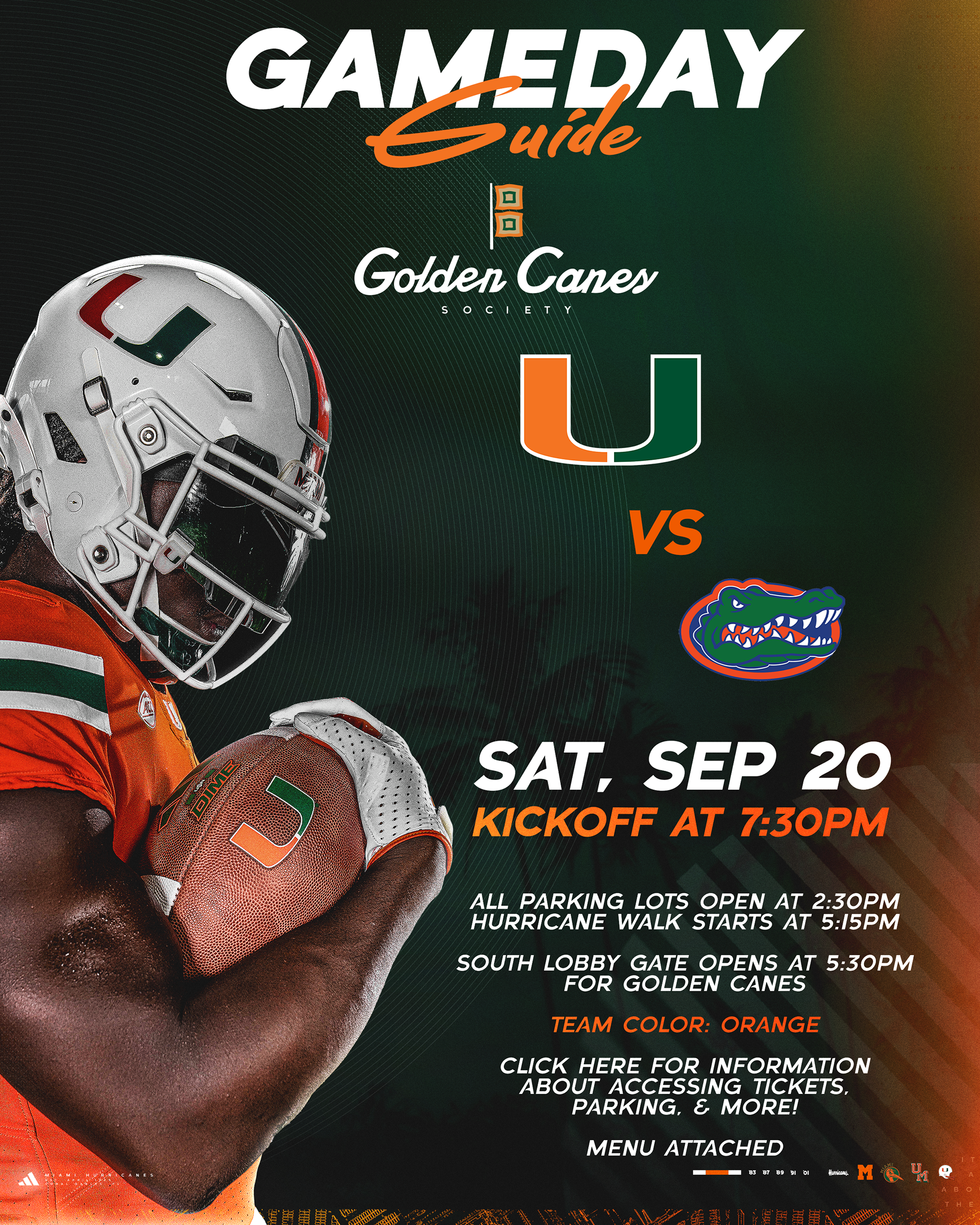 Gameday Guide graphic sent out to Golden Canes Society